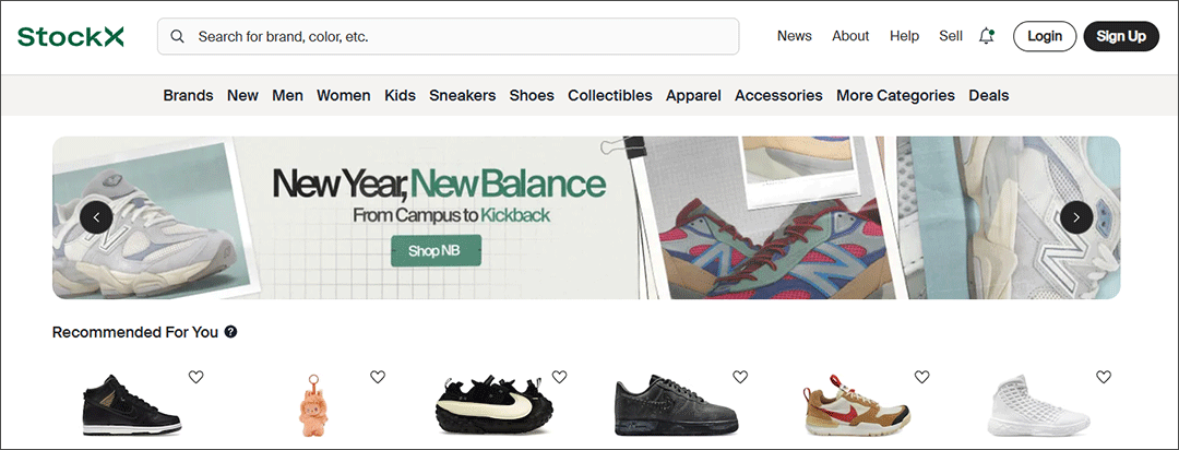 StockX,被称为“球鞋界的股市”。平台 2016 年上线,总部在底特律,主打“竞价成交 + 官方验真”,不用担心买到假货。