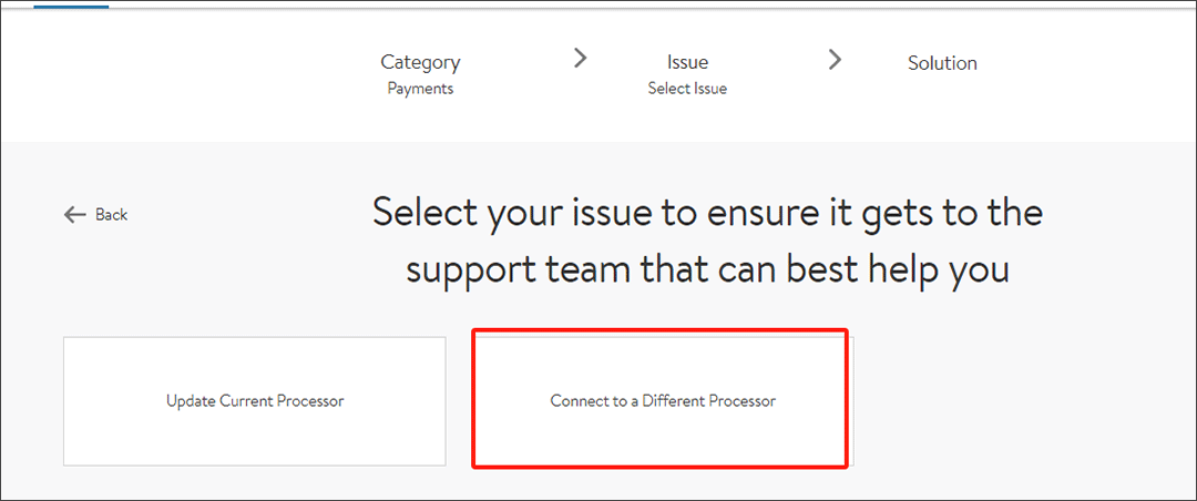 选择Payments -> Payment Processor Change -> Connect to Different Processor