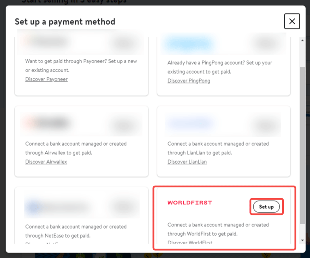 2. 选择“WORLDFIRST”进行收款账户的填写及绑定