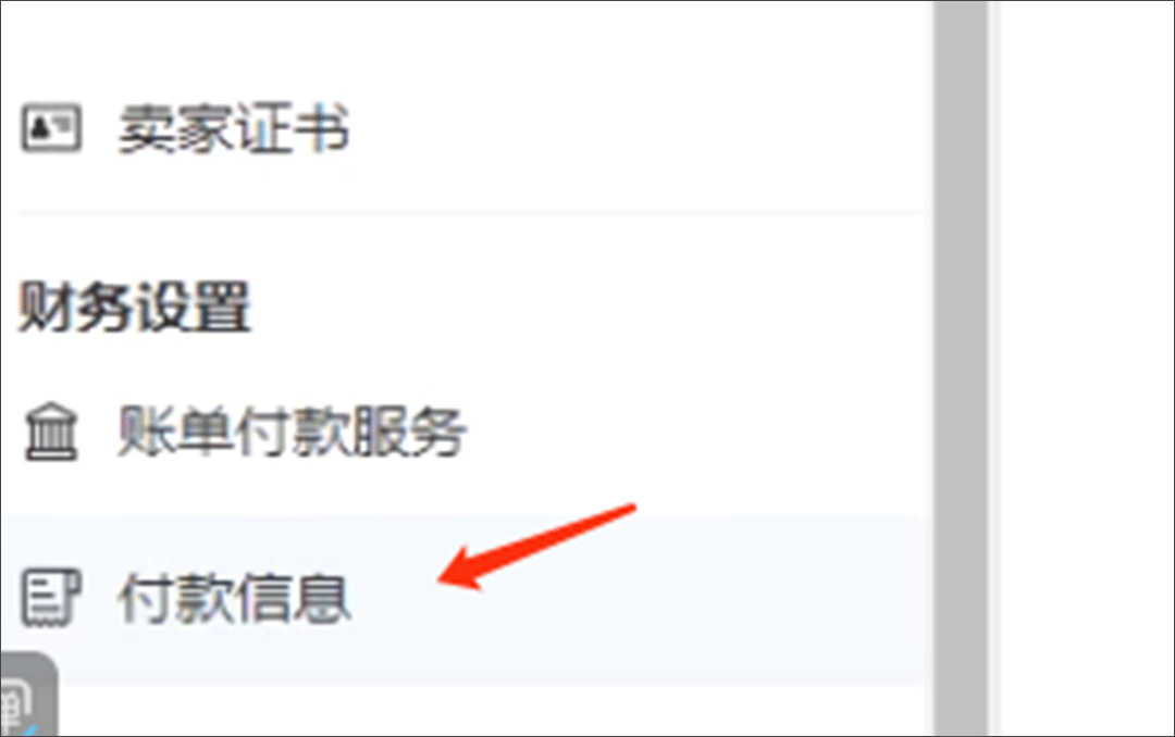 方式二:商家后台侧边栏 > 财务设置 > 付款信息